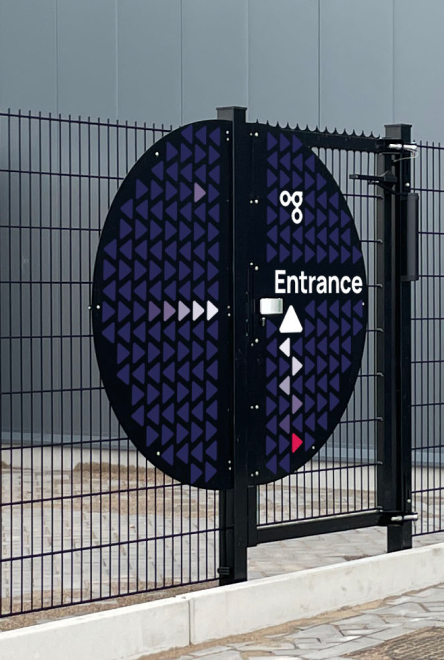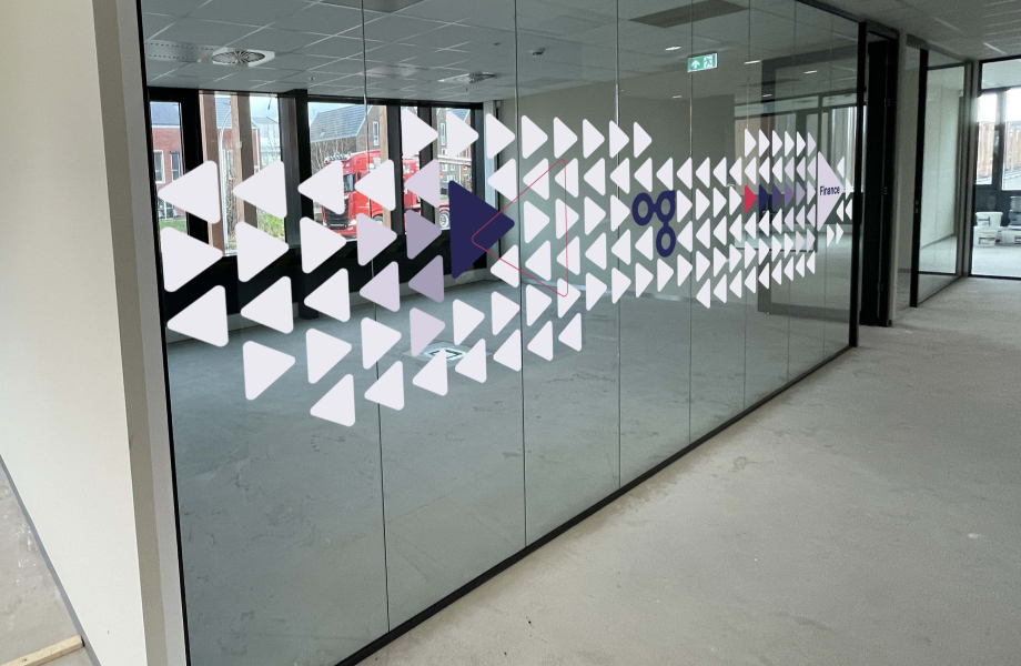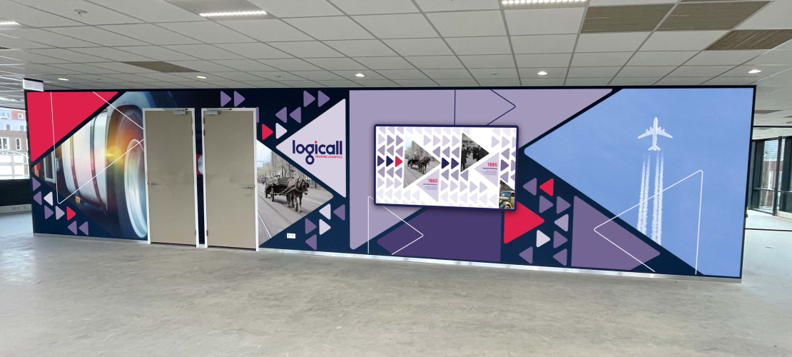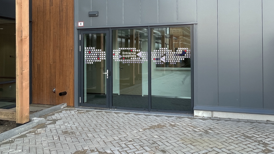 De signing op het pand is zowel functioneel als sfeerbepalend. Buiten wijst de bewegwijzering de weg naar ingangen en belangrijke plekken, terwijl binnen de patronen op wanden en andere oppervlakken de merkbeleving van Logicall versterken. Door het concept van de signing slim toe te passen, ervaart iedereen die het pand betreedt het merk op een natuurlijke, visuele manier. Zo ontstaat een uniforme en krachtige merkervaring, van buiten tot binnen, zonder dat afzonderlijke elementen geforceerd lijken.