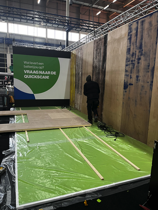 Wij bedenken het complete beursconcept en voeren het vervolgens uit. Dat betekent dat we niet alleen de animatie en het ontwerp verzorgen, maar ook fungeren als sparringpartner voor alles wat nodig is rondom het evenement: stroompunten in de beursportal, zichtbaarheid in de hal, inrichting van de stand, voorraad in de koelkast, en aan het einde van de beurs zorgen wij dat alles wordt afgebroken en materialen duurzaam worden opgeslagen voor hergebruik. Zo creëren we een opvallende, functionele en visueel indrukwekkende stand, terwijl de klant zich volledig kan richten op het gesprek met bezoekers.